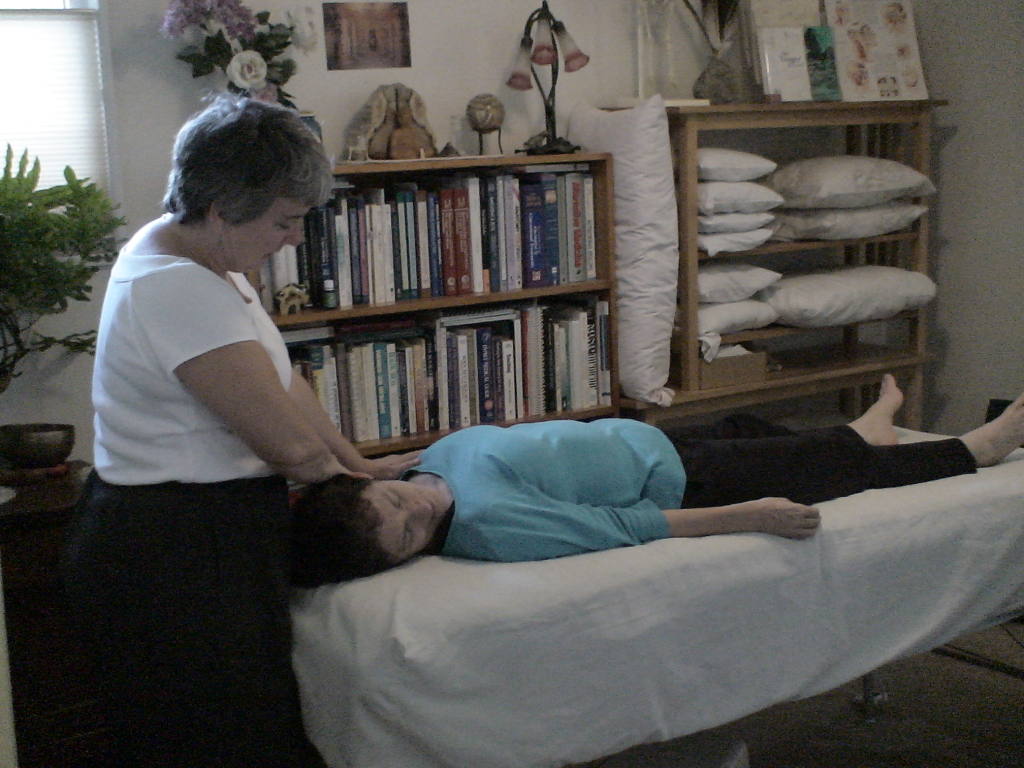 This is my previous Trager office. I do not yet have photos of the office in Lewes, DE! I have pillows of all sizes to help my clients be as comfortable and supported as possible. As you can see, this client prefers no pillows! This is a gentle slow stretch for the neck...great for those with tightness in the upper back & neck. As the muscles relax, they become more elastic, allowing greater stretch. |